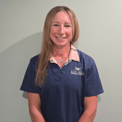Her lifelong love for animals led her to the veterinary field, and she found her place at Echo Ridge, where she enjoys the constant learning that comes with each unique case. She knew she was in the right profession when she began waking up excited to go to work, never watching the clock, and feeling fulfilled by the positive impact she had on pets and their owners. Plus, getting to snuggle puppies and kittens is always a perk!